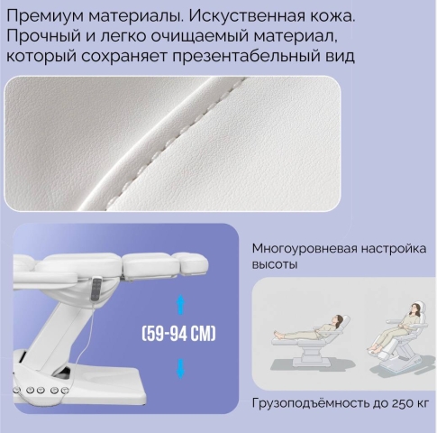 - Два мощных мотора — легкая регулировка высоты и угла наклона для удобства клиента.