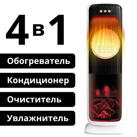 Тепловентилятор с имитацией камина идеально подойдет для дачных домов и городских квартире. Выпускает поток теплого воздуха с помощью вентилятора, обеспечивая быстрый и равномерный обогрев.